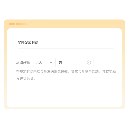支持设置活动当天或者之前7天的固定时间点自动为会员发放奖励