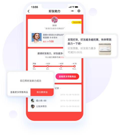 好友助力,带动用户裂变增长