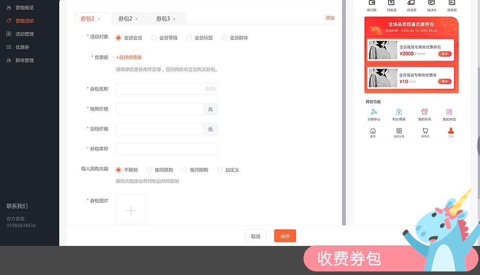自主设置每个券包中包含的优惠券,增强活动趣味和创意