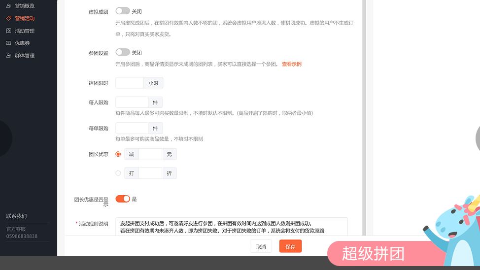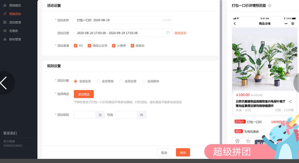 唤回老会员参与商城拼团活动,通过拼团超低价格吸引老用户参与带动新用户加入,促进订单达成,提升成交率