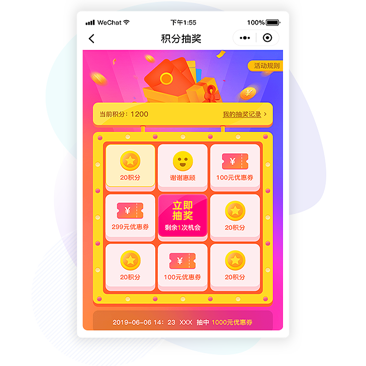 积分商城可进行实体商品及优惠券兑换,利用优惠折扣刺激用户二次消费