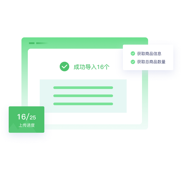 可批量导入商品信息,展示商品获取进度,获取完成后展示已成功获取商品数量和总商品数量