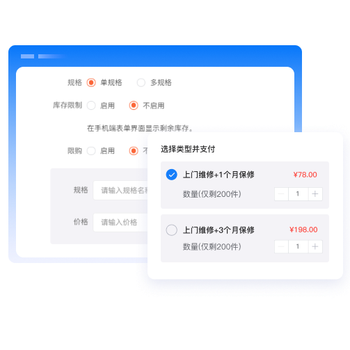 支持设置库存和限购,并且可以与日历组件联动,结算价格=单价*数量*天数