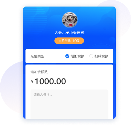 支持在手机端管理商城会员,一键为会员充值积分、余额和赠送优惠卷